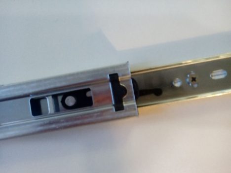 Но ходя по магазину фурнитуры, я увидел вот такие шариковые направляющие. Они стоили, ужас, сколько целых 50 рублей за 40 см и 75 рублей за 50 см. На 25 - 30 рублей дороже. Купил себе комплекты на всю горку. Называются они шариковые направляющие. шириной взял 3,5 см. Есть и помощнее для нагруженных ящиков.