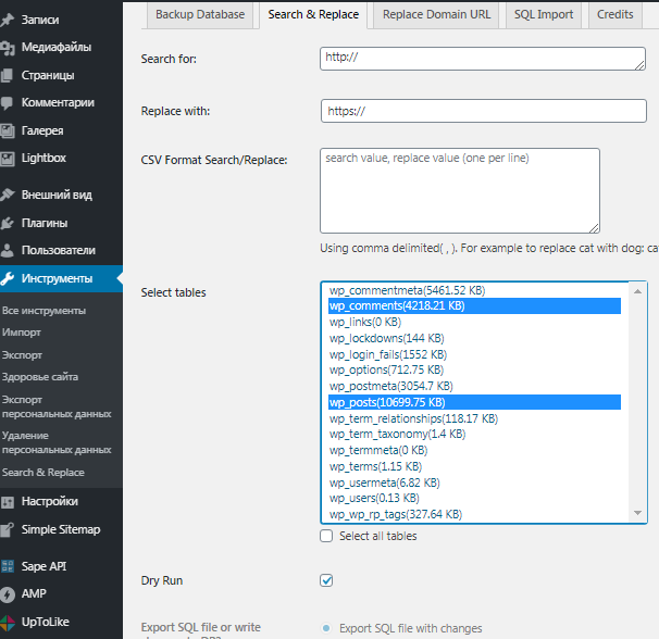 Бесплатный и полнофункциональный аналог плагина Better Search ReplaceДля массовых замен текста в базах данных wordpress существует самый популярный плагин Better Search Replace. Плагин неплохой, все его везде рекомендуют. Но к сожалению плагин в бесплатной версии позволяет производить манипуляции с базой данных вслепую. То есть перед тем как провести реплейс по базе вы не можете взять и посмотреть, что он собирается там менять. Я нашел ему достойную замену - вот он Search & Replace By Inpsyde GmbH. С аналогичным и полным бесплатным функционалом. В моем случае при переводе сайта на HTTPS нужно было заменить все ссылки формата http:// на https://. Установил плагин, он мне любезно предложил сделать бекап БД, что я сразу и сделал. Затем ежу перешел на вкладку Search & replace. Ну а тут все проще простого. Ввел что и на что заменить. Выбрал таблицы, с которыми нужно поработать и нажал на единственную внизу кнопку. ОБРАТИТЕ ВНИМАНИЕ Я НЕ СНИМАЛ ГАЛОЧКУ С ПУНКТА DRY RUN (ХОЛОСТОЙ ПУСК). Это я сделал для того, чтобы посмотреть, что он собирается менять. После прохода наверху он написал мне сколько таблиц и ячеек собирается менять и была кнопочка Показать детали. Нажав на которую, я смог посмотреть что он собирается менять. Именно эта функция в плагине Better Search Replace оказалась доступной только в платной PRO версии. А в этом плагине она бесплатная. В общем посмотрел, все правильно. Снял галочку Dry Run. Ниже выбрал пункт - Save changes to database. Сохранить изменения в базу данных и запустил. Скрипт все сделал, за что его автору респект. Также он мог мне сгенерировать SQL файл, чтобы я сам его загрузил себе в phpMyAdmin. Но проще сразу внести изменения в базу. |